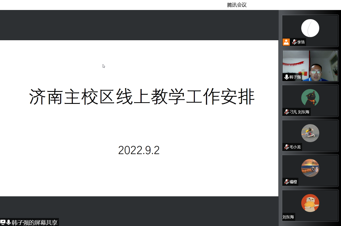 根据校(院)教务部《关于济南主校区开启线上教学的紧急通知》要求,9月2日晚,学院(中心)以网络会议的形式召开线上教学工作安排会,对线下教学转为线上教学的工作进行布置。会议由学院(中心)副院长韩子强主持,全体教师参加了会议。
