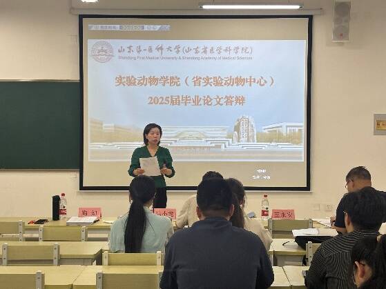 实验动物学院(省实验动物中心)于2025年5月30日举行了2025届医学实验技术(医学实验动物方向)本科专业的毕业论文答辩。此次答辩按照校(院)教务部《关于做好2025届本科生毕业论文(设计)工作的通知》的要求,共有38名学生参与,答辩分为3组,由学院(中心)具有高级职称的教师担任评委。