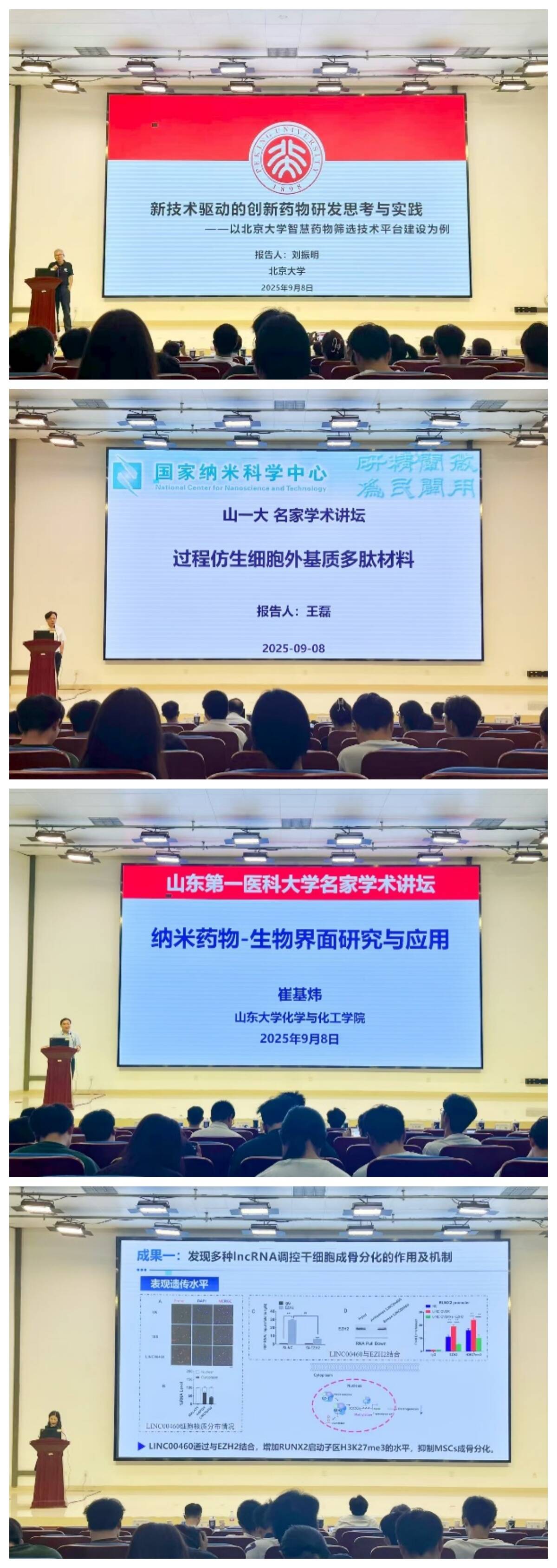 本次讲坛以“从机制到转化:先进生物材料与药物新策”为主题,聚焦人工智能驱动药物研发、仿生生物医用材料、纳米药物构建与应用、骨组织修复与再生等前沿方向,邀请到北京大学、国家纳米科学中心、山东大学四位知名专家作精彩报告,吸引了全校及多家科研机构师生参加。