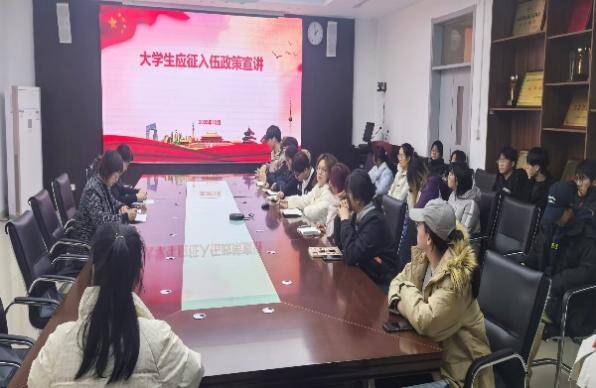 会议伊始,学院党委副书记梁莉芃以身边大学生参军入伍的真实案例为切入点,详细介绍应征入伍政策,紧密结合当前就业市场发展趋势与国家国防建设现实需求,深入阐释了大学生参军入伍对于国防建设、个人成长的意义。她鼓励大家积极响应号召,携笔从戎投身军营,在强军兴军的征程中书写青春华章,以实际行动为祖国国防和军队现代化建设贡献青春力量。